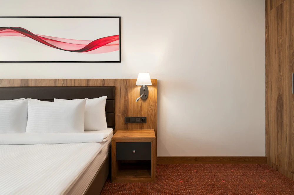 Modern konuk odalarının her birinde mini bar, kahve/çay makinesi, düz ekran HD TV, oturma alanı, kasa, masa, ütü olanakları, seccade, terlik, şişe su, banyo ürünleri, saç kurutma makinesi ve uzaktan kumandalı klima mevcuttur.